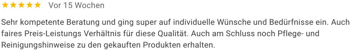 freuen wir uns über die zahlreichen positiven Google Bewertungen unserer Kundinnen und Kunden.
